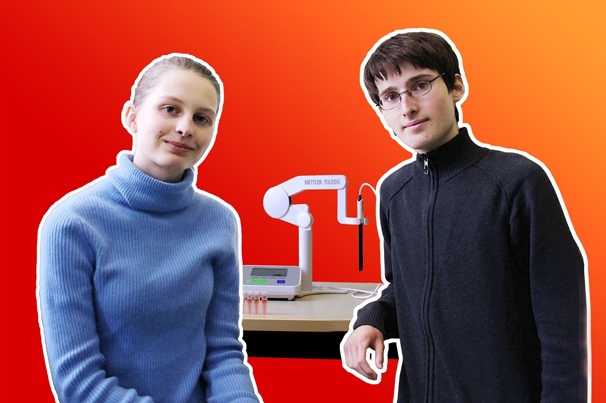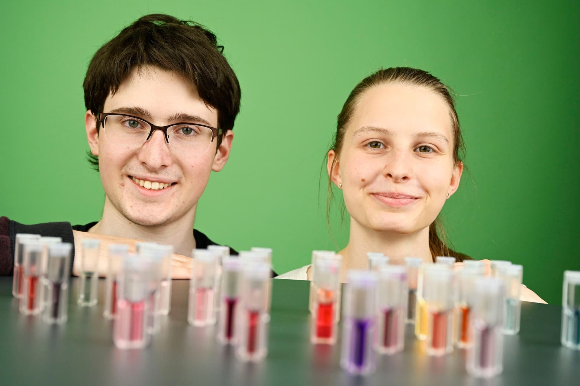 Aluminium steht im Verdacht, für Menschen gesundheitsschädlich zu sein. Anna-Yaroslava Bodnar und Alexander Csaba Baumgarten beschäftigten sich bereits länger mit der Frage, wie sich schnell und einfach der Aluminiumgehalt in Nahrungsmitteln bestimmen lässt. Sie nutzten dafür Farbstoffe, die mit Aluminium-Ionen Molekülkomplexe bilden. Als knifflig erwies sich das Mischen und Testen der Farbstoffe in einem optimalen Verhältnis, da wegen der Coronapandemie keine Laborversuche möglich waren. Die Jungforscherin und der Jungforscher verlegten das Labor daher ins Homeoffice: Mit dem Computer errechneten sie die Spektren der verschiedenen Molekülkomplexe und Farbstoffmischungen. Auf Basis dieser Formeln, so glauben die beiden, können einfach anwendbare Teststäbchen für zu Hause entwickelt werden.