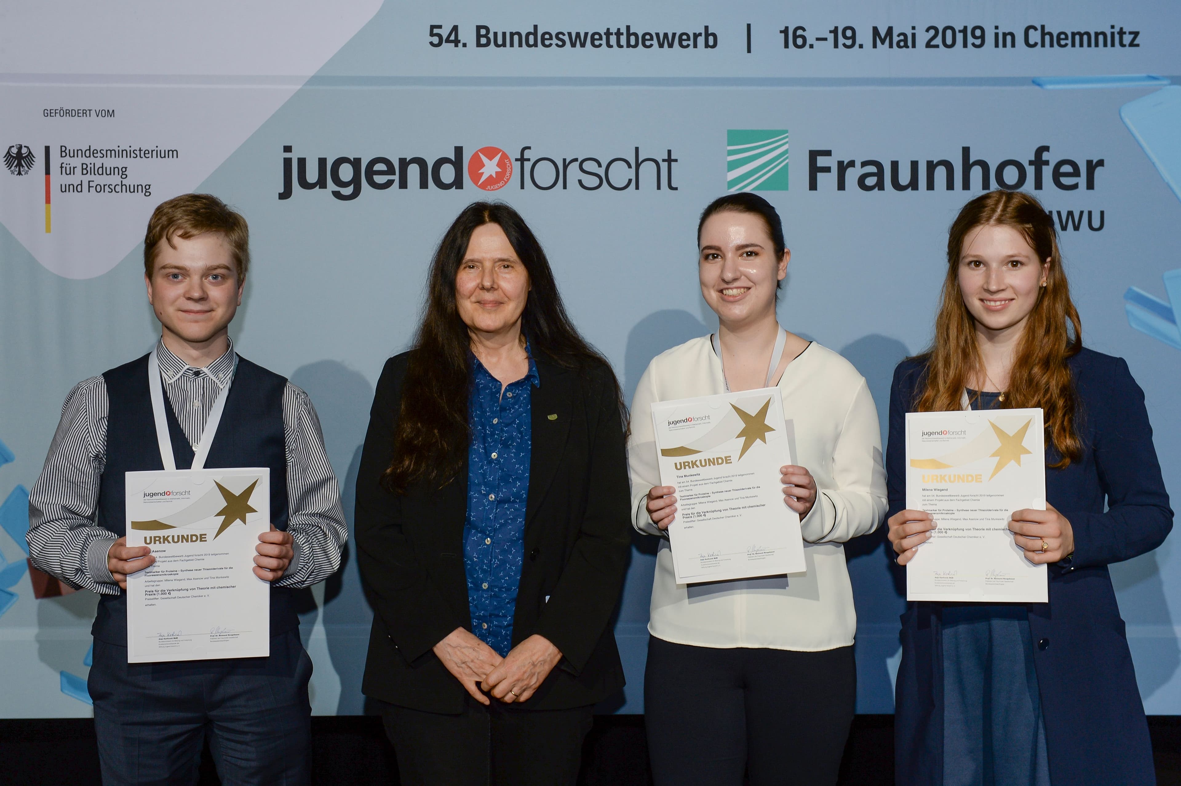 Die Jury beeindruckte besonders, dass Milena Wiegand, Max Asenow und Tina Munkewitz nicht nur eine interessante eigene Problemstellung entwickelten, sondern im Verlauf ihrer Forschungsarbeit das Potenzial der neuen Farbstoffe erkannten. Im Team brachte jeder seine Stärken ein, sodass die Jungforscher in einer besonders interdisziplinären Weise ein exzellentes Gesamtergebnis erzielten.