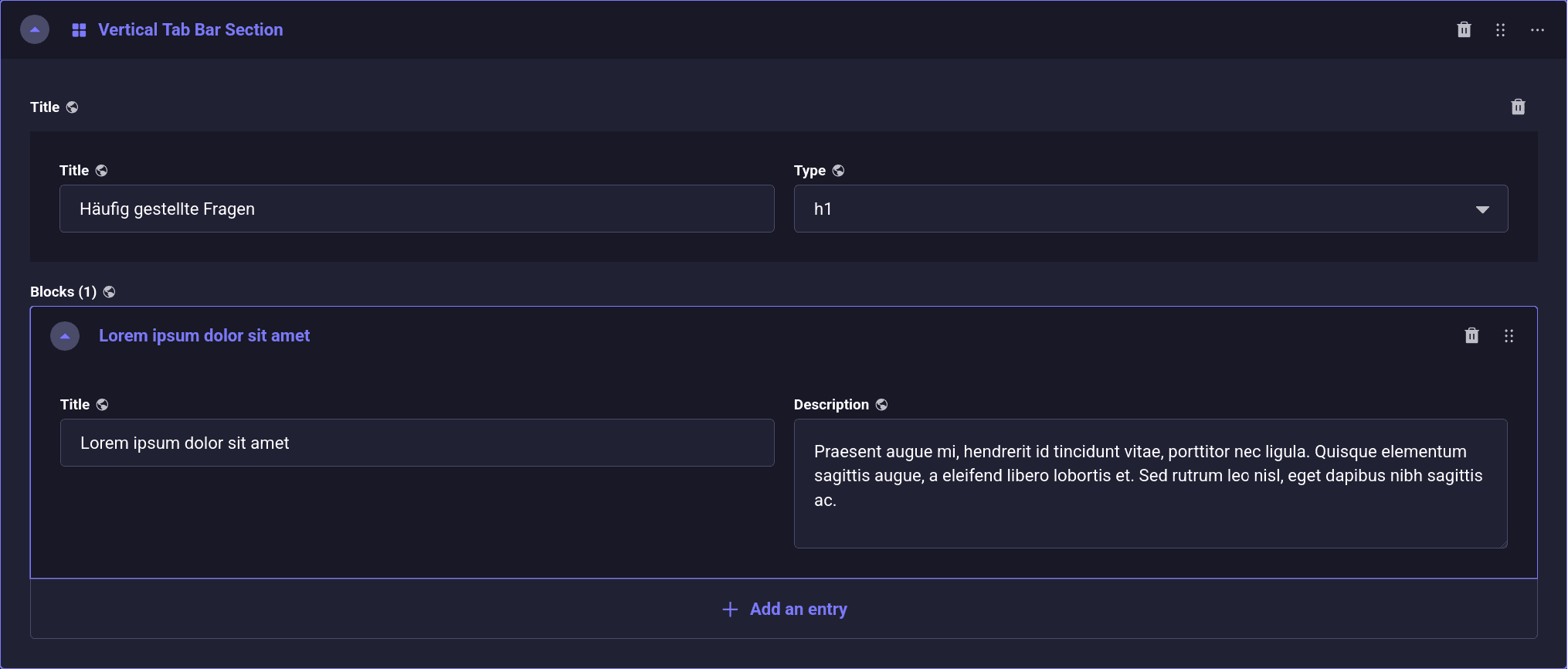 Hinter diesem Inhaltselement verbirgt sich die Möglichkeit Absätze hinter Unterüberschriften zu verbergen und erst auf Klick sichtbar zu machen. Ein beliebtes Element für z.B. Frage-Antwort-Listen.
