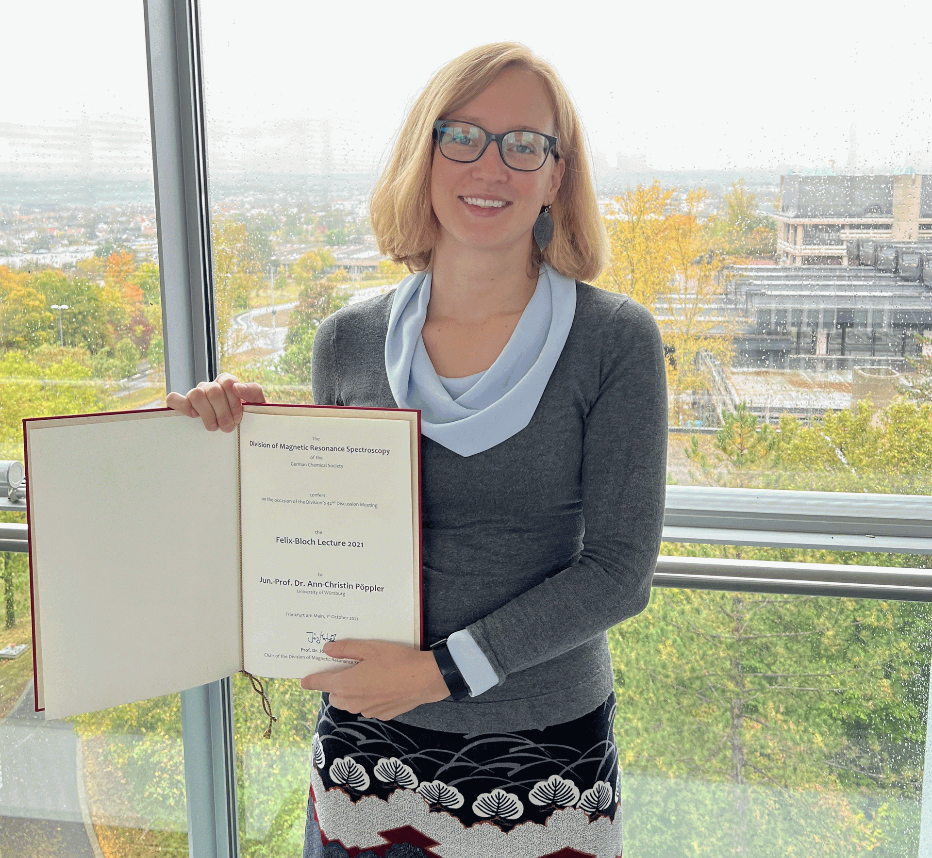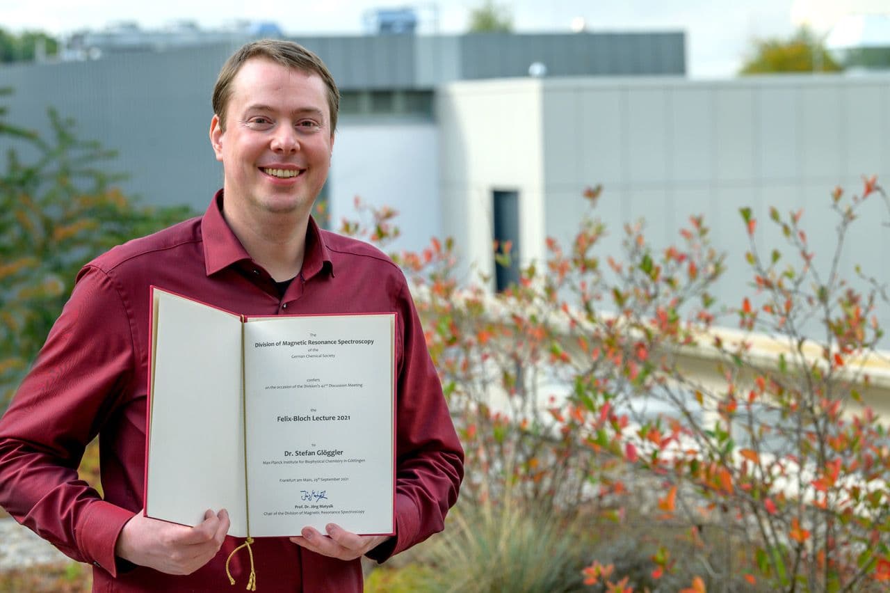 Jun.-Prof. Dr. Ann-Christin Pöppler (Universität Würzburg) und Dr. Stefan Glöggler (Max-Planck-Institut für Biophysikalische Chemie, Göttingen) wurden während des 42. FGMR Discussion Meetings am 1. Oktober bzw. 29. September 2021 jeweils mit der Felix-Bloch-Vorlesung 2021 geehrt.