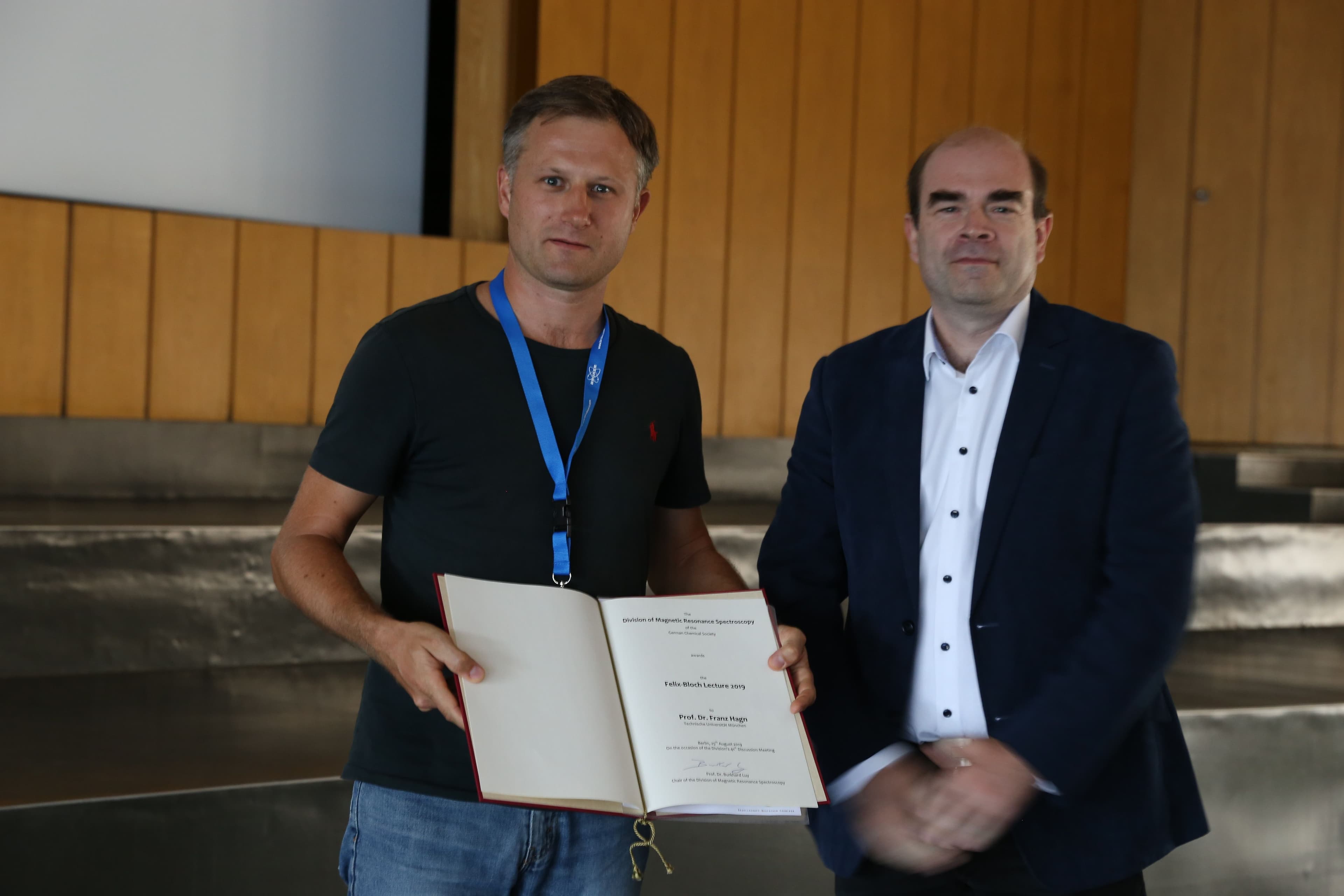 Mit der 2019er Felix-Bloch-Vorlesung wurde Prof. Dr. Franz Hagn während der 41. FGMR-Vortragstagung (EUROISMAR; Berlin) am 25. August 2019 geehrt.