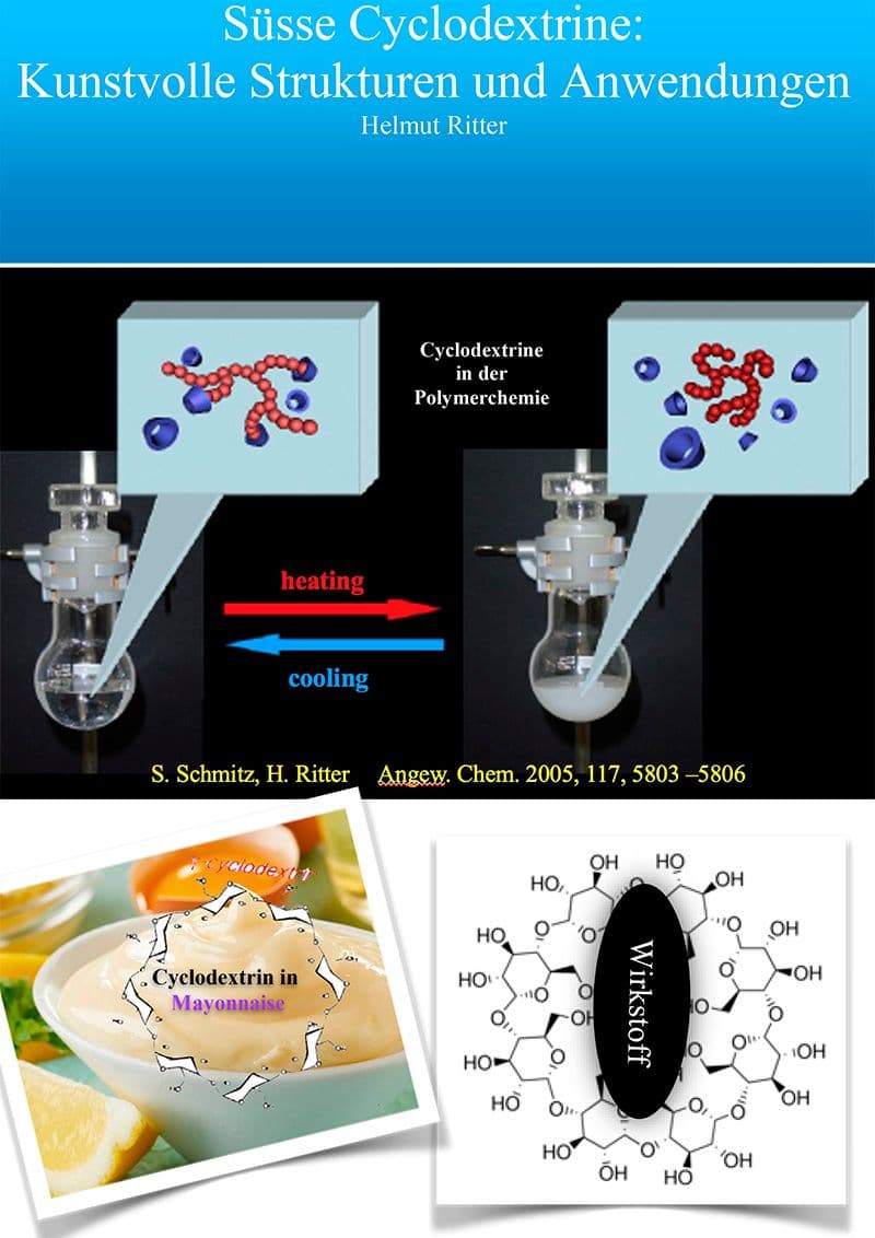 Der Focus liegt auf der Polymerchemie, zeigt aber auch die Breite der übrigen Anwendungen auf. So kann z.B. die Umwandlung einer viskosen Flüssigkeit in ein Gel in der Bauindustrie nützlich sein. Beispielsweise lässt sich ein Arzneistoff gegen Bindehautentzündung mit CD wasserlöslich machen und die wässrige Lösung kann direkt ins Auge geträufelt werden. Der Wirkstoff wird in molekular disperser Form durch Spaltung der CD Ringe mittels der anwesenden Amylasen in der Tränenflüssigkeit freigesetzt.