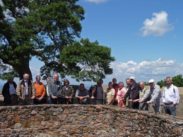 Ein sachkundiger Führer vermittelte auf dem Auerbacher Schloss Fakten zur Burg und zur Geschichte des Mittelalters. Die Grafen von Katzenelnbogen hatten die mächtige Burg 1222 erbaut, um ihre Pfründe an der Bergstraße gegen das mächtige Kurmainz zu sichern. Als das Geschlecht 1479 ausstarb, ging ihr bedeutendes Vermögen an die Landgrafschaft Hessen. Bei mittlerweile strahlendem Wetter erfrischten sich die Pensionäre mit einem Picknick im Burghof, bevor sie den Rückweg nach Zwingenberg antraten.