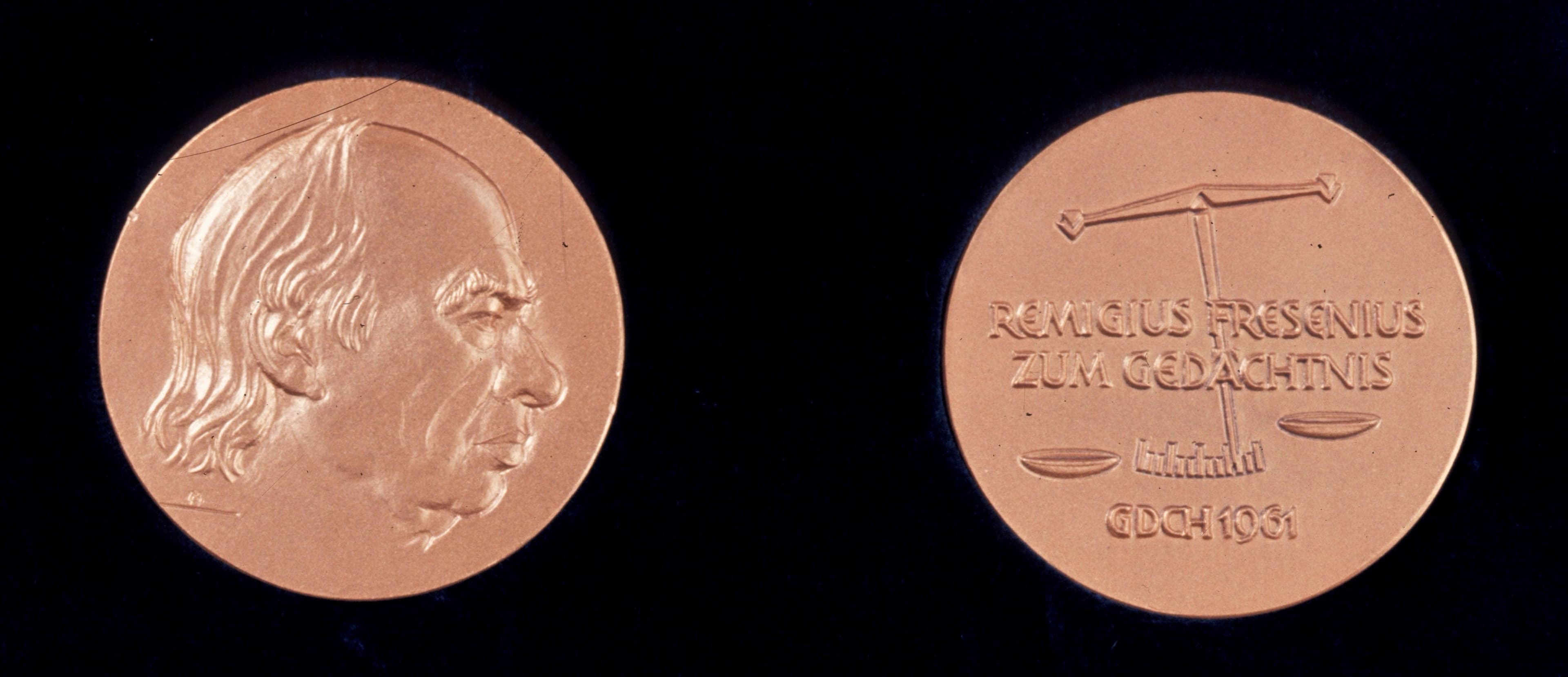 geschaffen. Der Preis besteht aus einer von dem Bildhauser Heinrich Moshage, Düsseldorf, geschaffene Denkmünze aus Gold mit dem Bildnis von Remigius Fresenius und einem Geldpreis von €7.500,-.