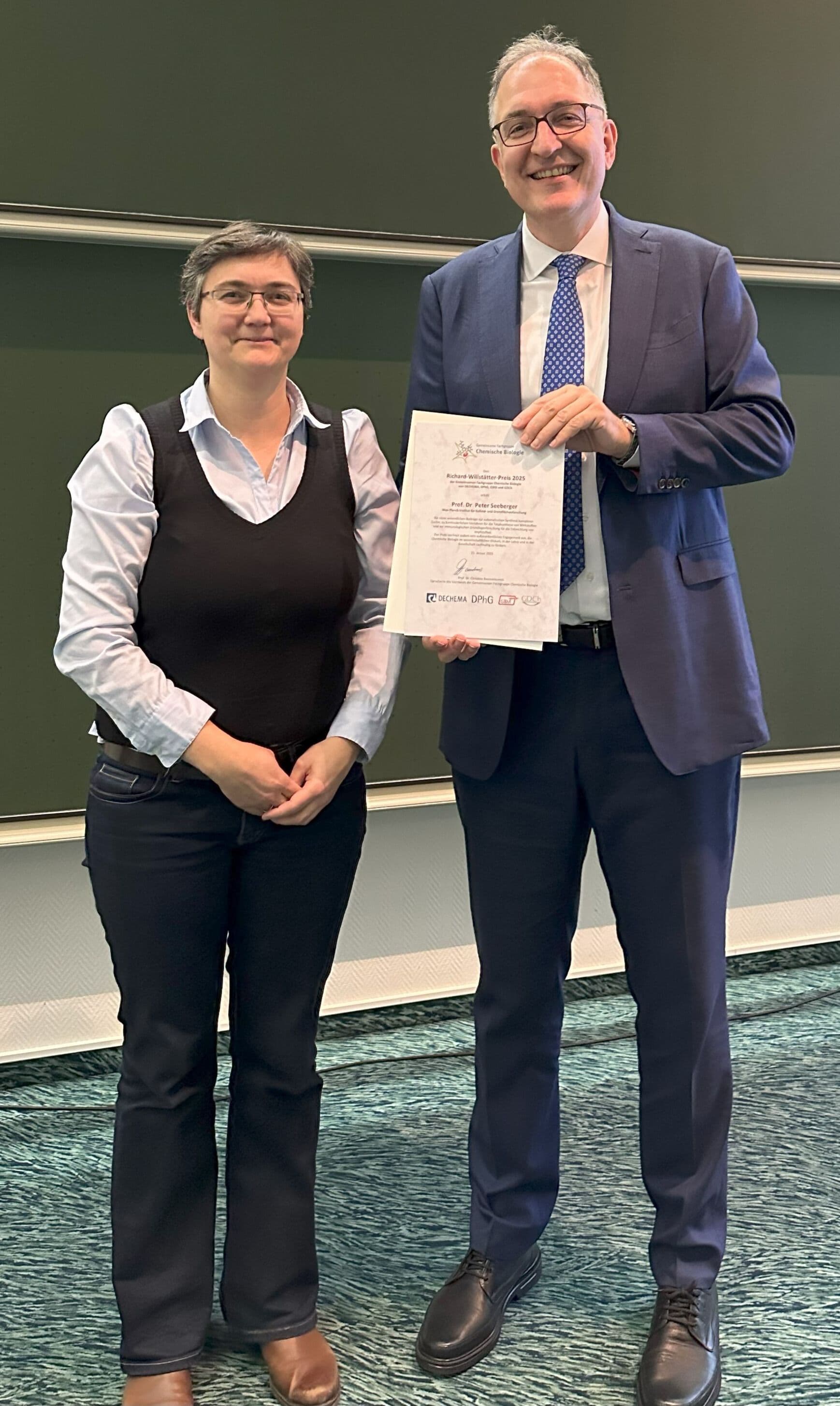 Prof. Dr. Dr. h.c. Peter Seeberger, Direktor am Max-Planck-Institut für Kolloid- und Grenzflächenforschung in Potsdam, wird mit dem Richard-Willstätter-Preis für Chemische Biologie 2025 ausgezeichnet. Der Preis würdigt seine bahnbrechenden Forschungsarbeiten, die unser Verständnis chemisch-biologischer Zusammenhänge maßgeblich vertieft und richtungsweisende Impulse für zahlreiche weitere Forschungsgebiete gegeben haben. Prof. Seeberger reiht sich damit in die Liste herausragender Wissenschaftler:innen ein, die durch diesen Preis ausgezeichnet wurden, und setzt mit seiner Arbeit neue Maßstäbe in der Chemischen Biologie.